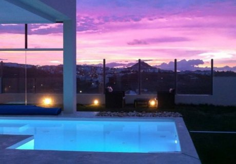 Villa in Las Mesas is a stunning 4-bedroom retreat featuring private pools, panoramic views, and luxurious amenities. Perfect for a serene getaway.