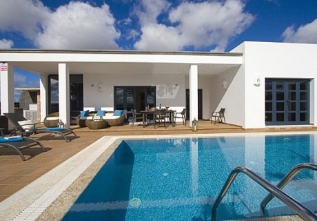 This holiday villa in Playa Blanca offers 3 bedrooms, a heated pool, jacuzzi and modern décor, ideal for relaxed family holidays for up to 6 guests.