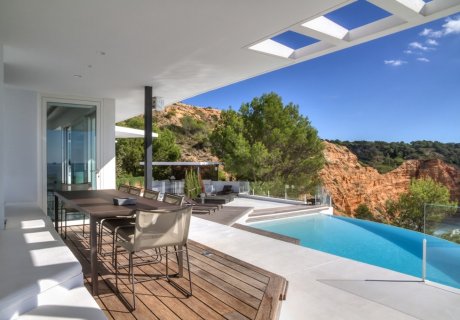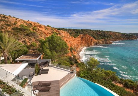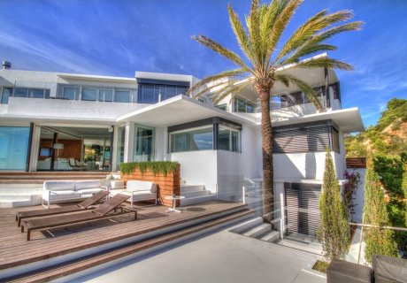 Luxurious 7-bedroom villa with infinity pool, boat deck, concierge services, private chefs, airport transfers and stunning sea views in Vista Alegre, Ibiza.