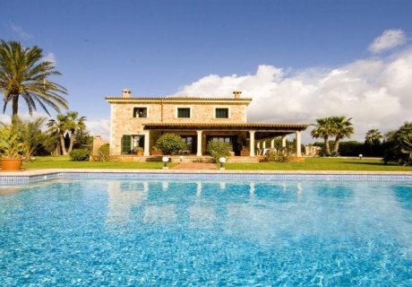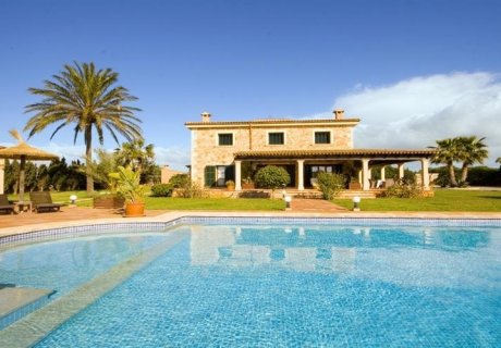 This luxury holiday villa in Cala D'Or, Mallorca offers 5 bedrooms, a private pool, garden, and outdoor kitchen, perfect for 10 guests.