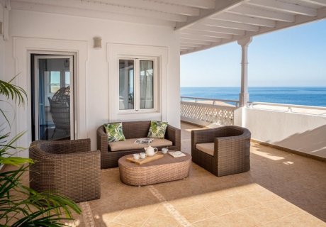 The exterior is designed for enjoyment and comfort. Guests can cool off in the crystal-clear pool, lounge on premium sunbeds, or dine al fresco on the spacious terraces while taking in the spectacular scenery. Every outdoor area provides a peaceful setting for relaxation, socializing, and soaking up the Lanzarote sunshine.