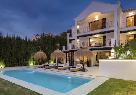 Nestled in the exclusive Puerto Del Capitan area of Benahavis, this striking 6-bedroom villa offers a luxurious retreat combining Scandinavian and industrial design with stunning Andalusian touches. Ideal for families or groups, the property features a heated pool, lush gardens, spacious terraces, and contemporary interiors, just minutes from Marbella, Puerto Banus, and Benahavis.