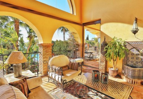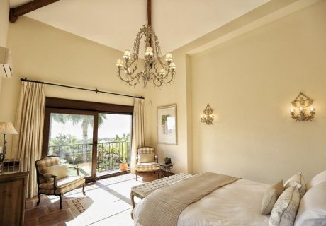 Situated in the picturesque Las Chapas area of Marbella, this five-bedroom villa combines Andalusian charm with modern luxury, accommodating up to ten guests. Featuring a heated salt-water pool, hot tub, gym, and cinema room, it provides the perfect setting for family or group holidays. Concierge services, airport transfers, and private tours are available to enhance your stay.