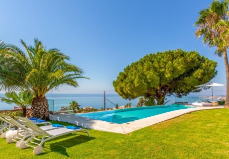 This 4-bedroom holiday villa in Benalmadena offers stunning sea views, an infinity pool, and a spacious garden, accommodating up to 9 guests.