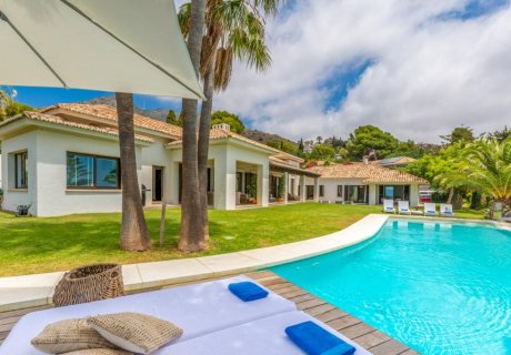 Perched on a hillside in Benalmadena, this four-bedroom villa offers breathtaking sea views and a luxurious Mediterranean retreat for up to nine guests. Designed in a traditional style with whitewashed facades, terracotta roof tiles, and Moorish-inspired interiors, the villa combines bright, airy spaces with family-friendly amenities, making it ideal for both relaxation and entertainment. Concierge services and additional offerings are available to enhance your stay.