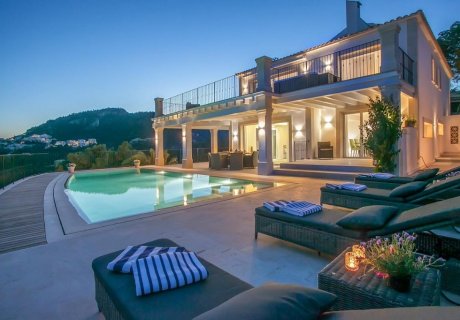 This vibrant holiday retreat in Mallorca offers 5 bedrooms, a stunning heated pool and modern amenities, just moments from Port d'Andratx.