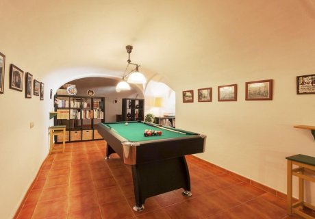 The outdoor areas provide ample space for relaxation and family fun. Guests can enjoy the private pool, dine alfresco on the covered terrace with barbecue facilities, or unwind in the landscaped gardens. Children will enjoy the playroom with its bar and TV, while adults can relax with a book or enjoy the Mediterranean climate.