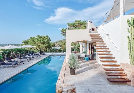 This exceptional villa in Cala Moli combines modern comfort, elegant design, and spectacular outdoor spaces. With a large pool, stunning sea views, and multiple terraces, it offers the perfect retreat for families or groups. Book your stay now and enjoy an unforgettable Ibiza holiday!
