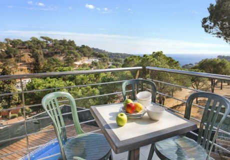 This sleek 4-bedroom holiday villa in Lloret de Mar offers stunning views, a private pool and family-friendly amenities, located just 2.5 km from the beach.
