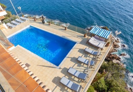 Situated in the Cala Canyelles area of Lloret de Mar, Costa Brava, this exceptional holiday villa offers five bedrooms and five bathrooms, accommodating up to twelve guests. With breathtaking sea views, complete privacy, and extensive outdoor spaces, this property is perfect for family holidays or large group getaways.