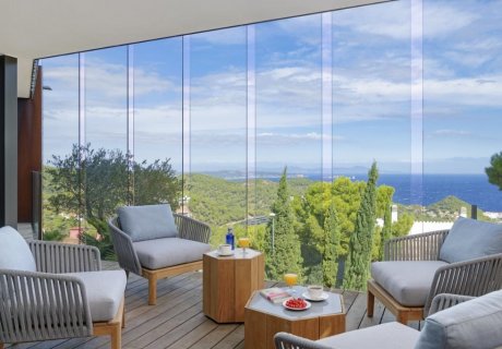 The architect-designed villa combines modern style with open, luminous interiors and seamless indoor-outdoor living spaces. Floor-to-ceiling glass, spacious living areas, and stylish furnishings create a bright and inviting atmosphere. Every modern convenience is included, ensuring guests can relax and enjoy a stress-free holiday from the moment they arrive.