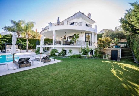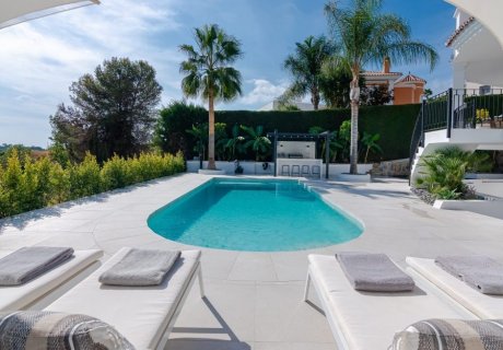 Stunning 5-bedroom villa in Benahavis, combining Andalusian architecture with Scandinavian design. Features a heated pool and outdoor kitchen. Sleeps 10.