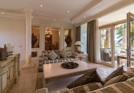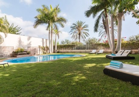 This luxurious 5-bedroom, 6-bathroom villa in Costa Adeje, Tenerife, accommodates up to 10 guests and offers high-end amenities including a heated pool, gym, solarium, and beautifully landscaped gardens. Perfect for families or groups, the property is set within the prestigious Golf Course of Las Americas, providing a serene and elegant retreat just moments from the island's top attractions.