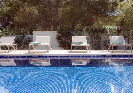 This spacious villa is set in a quiet residential area on the west coast of Ibiza, with breathtaking views of the sea, Es Vedrà, and at certain times of the year, stunning sunsets. A fifth bedroom can be made available upon request, making it perfect for larger families.