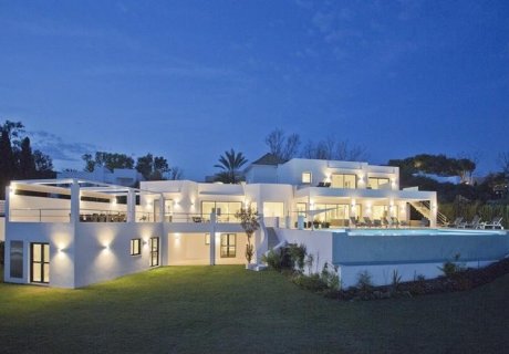 This 8-bedroom holiday villa in Las Chapas, Marbella features sea views, an infinity pool with pool bar and a basketball court for memorable group rentals.