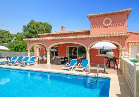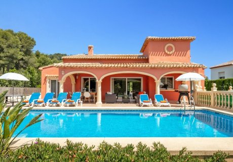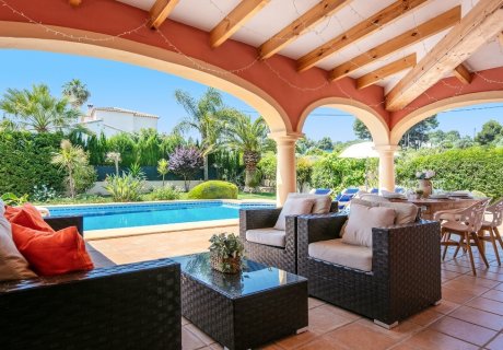 This relaxed holiday villa for rent in Javea offers 3 bedrooms, a heated pool and wide terraces, close to Arenal Beach and local dining.
