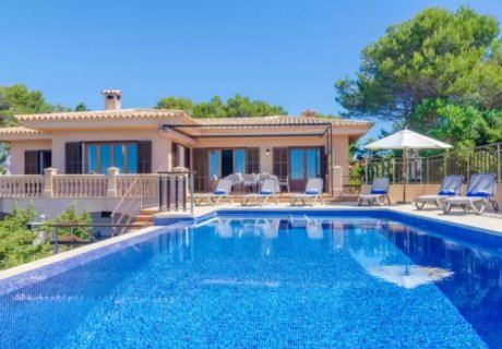 Set in Santanyi, this Mediterranean retreat features an infinity pool and scenic sea views, creating an unforgettable setting for relaxed holiday rentals.