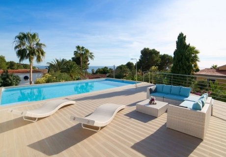 Contemporary 4-bedroom retreat in Benissa with stunning sea views, a private pool and easy access to local restaurants for relaxed coastal rentals.