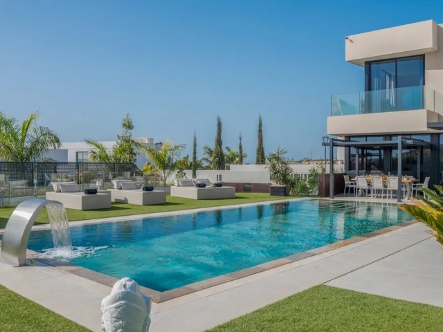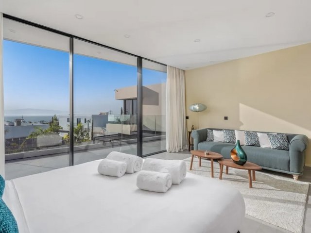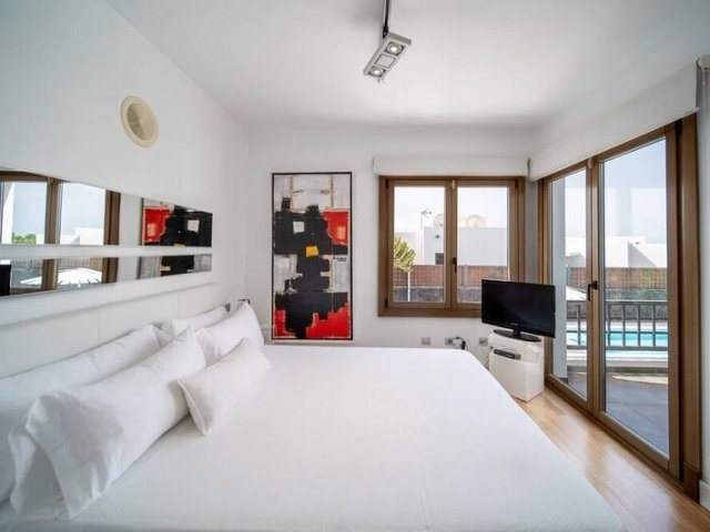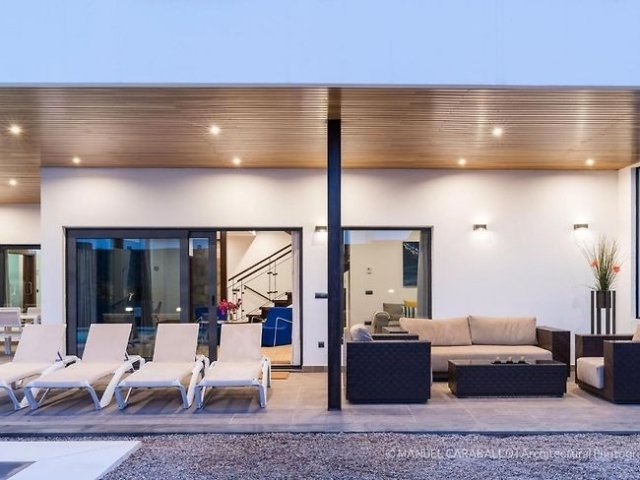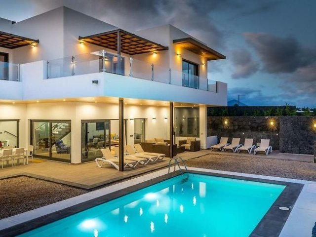 This modern 5-bedroom holiday villa rental in Puerto Calero features a private heated pool and is just minutes from the marina, shops and restaurants.
