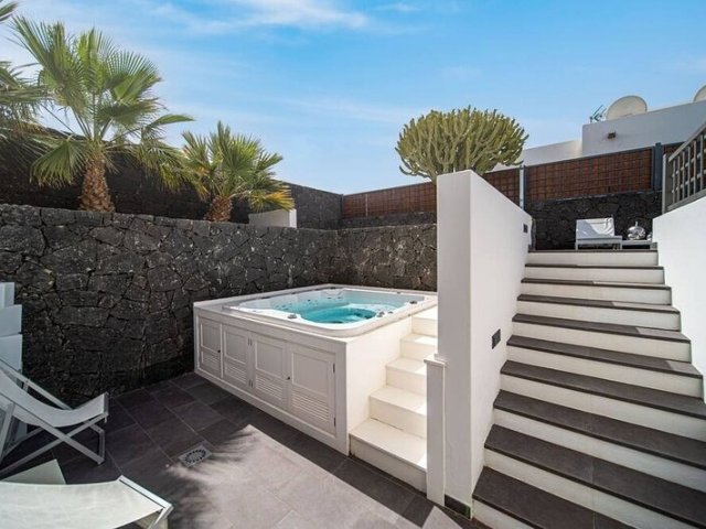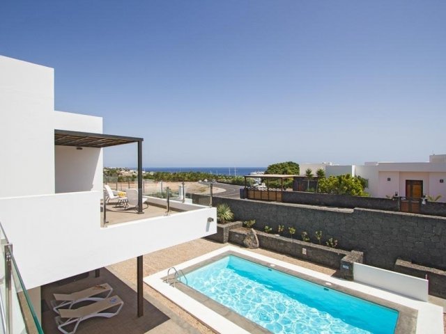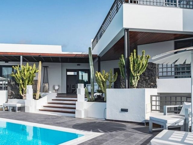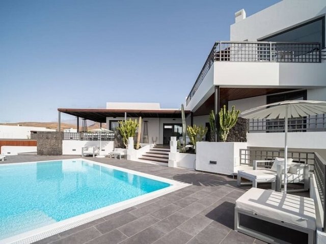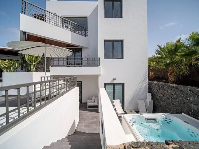 Escape to this modern holiday villa in Puerto Calero with a private pool, jacuzzi, and breathtaking ocean views, ideal for an unforgettable rental vacation.