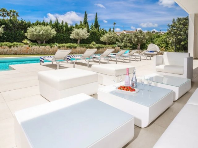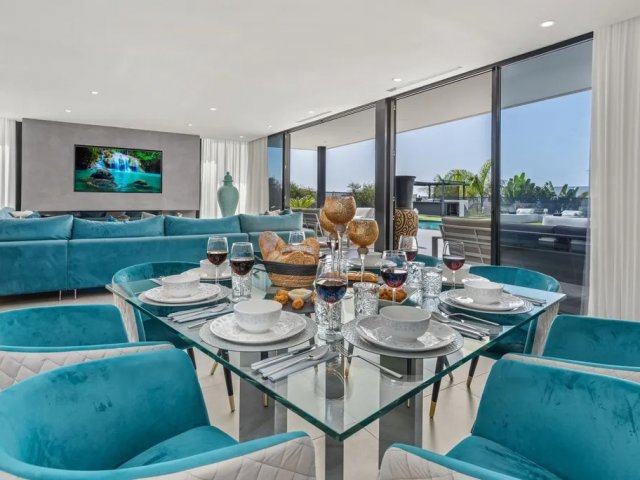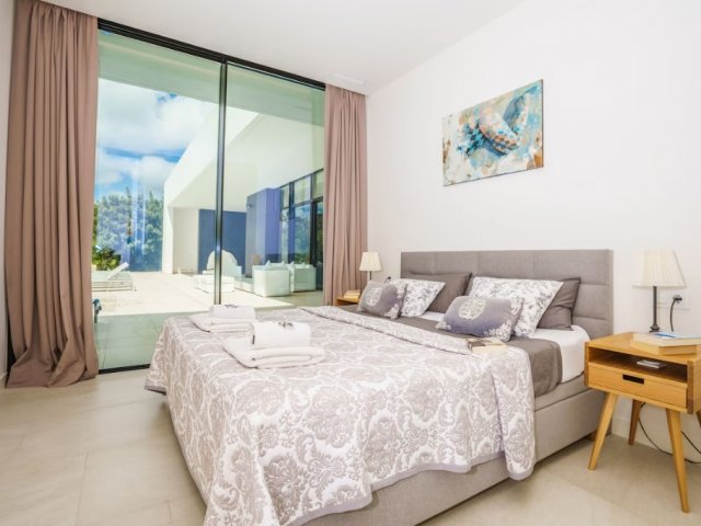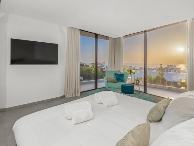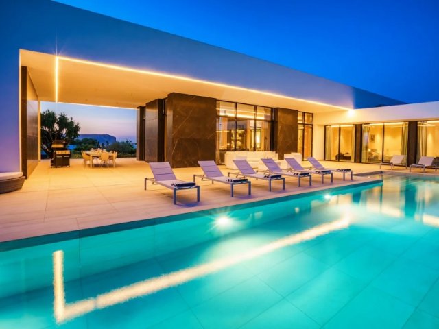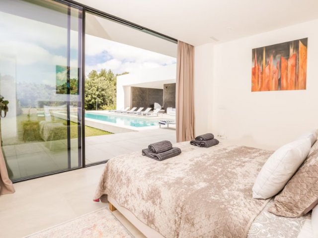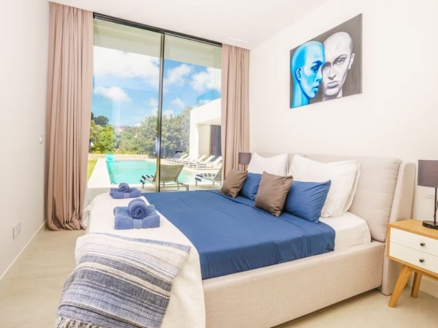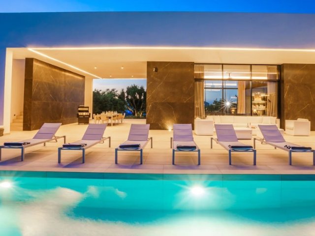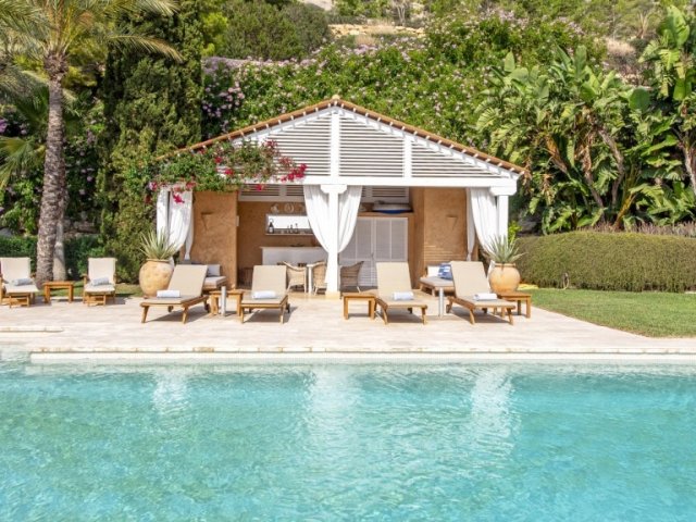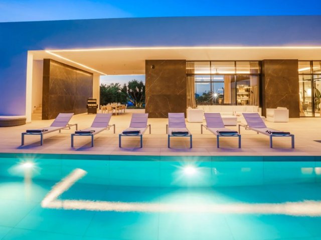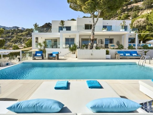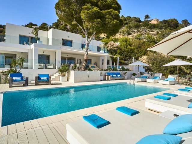 This luxury holiday villa by the sea in San Antonio, Ibiza offers 5 bedrooms, refined comfort and an ideal setting for unforgettable island rentals.