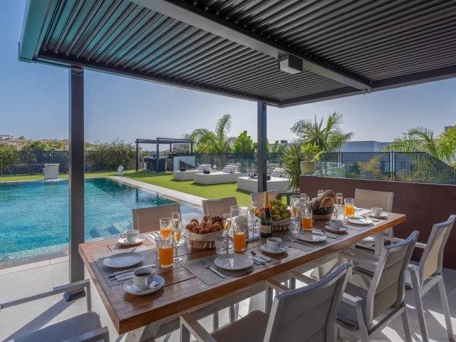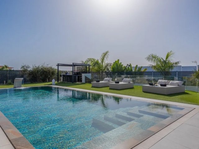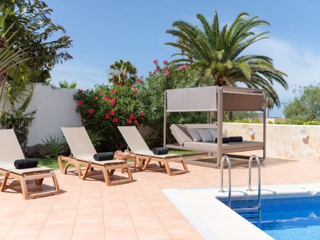 Modern 4-bedroom villa for 8 with heated pool, indoor gym, hammam, terraces, and private spaces, ideal for families or groups in Costa Adeje.