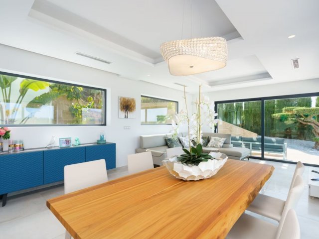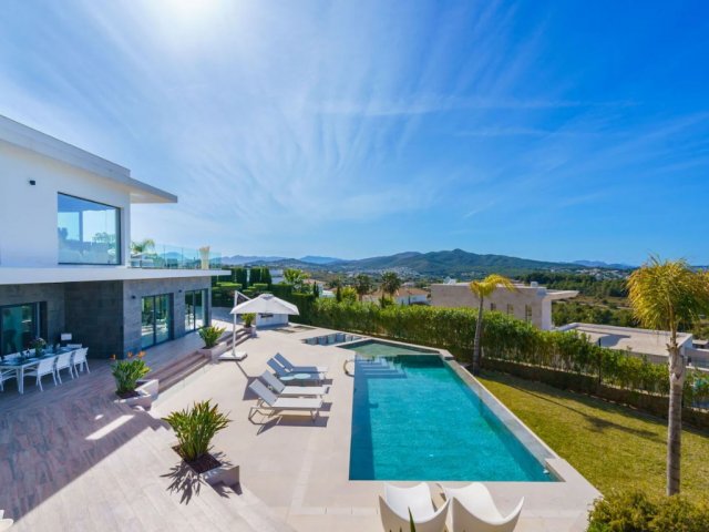 Spacious 5-bed Javea villa with 20m heated pool, huge gardens, modern interiors and terraces-ideal for 10 guests seeking a luxury Mediterranean escape.
