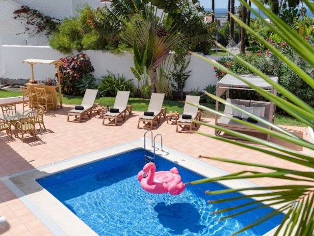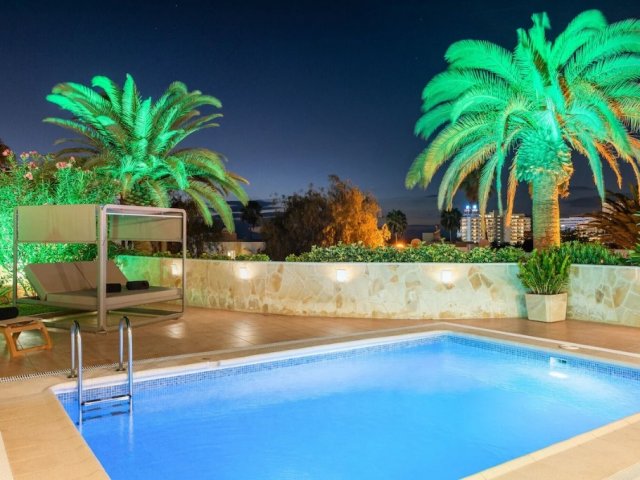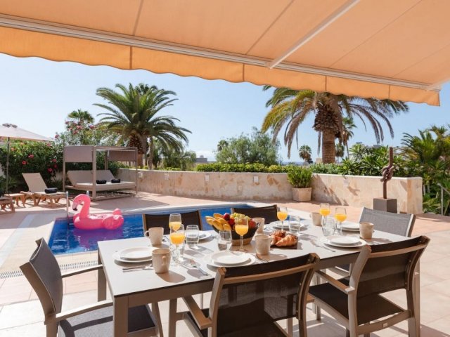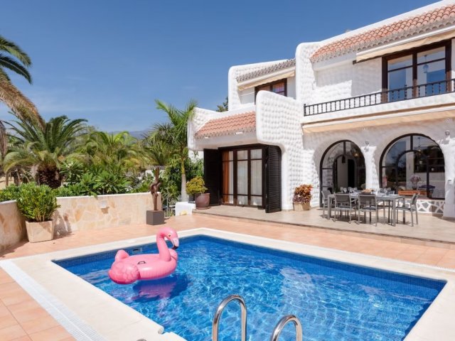 Spacious 5-bedroom villa in Playa de las Americas, Costa Adeje with heated pool, outdoor dining, games area, near beach and Siam Park. Sleeps 10.