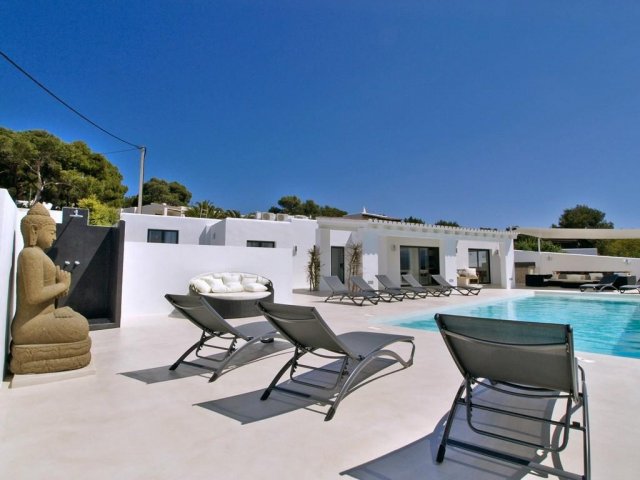This luxury holiday villa by the sea in San Antonio, Ibiza offers 5 bedrooms, refined comfort and an ideal setting for unforgettable island rentals.