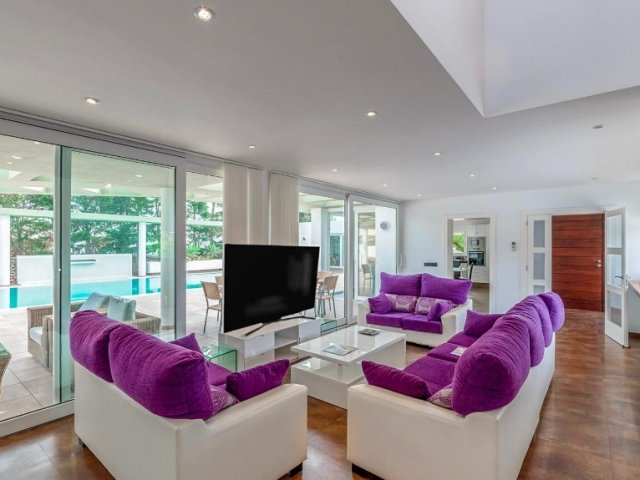 This family-friendly luxury villa in Menorca offers 6 bedrooms and an infinity pool, perfect for an exclusive holiday experience.