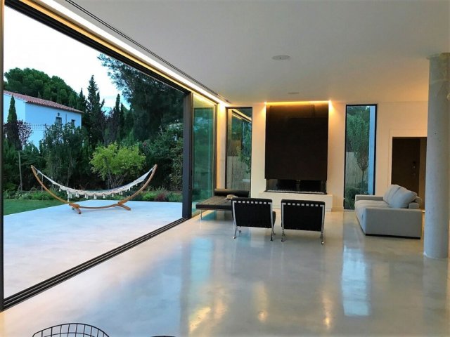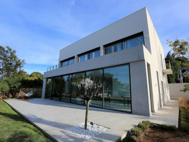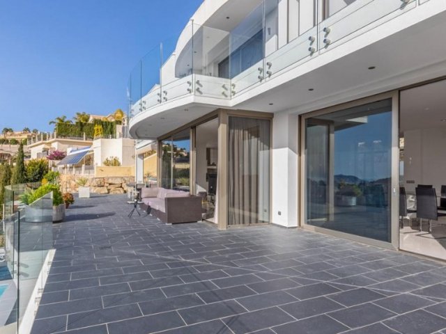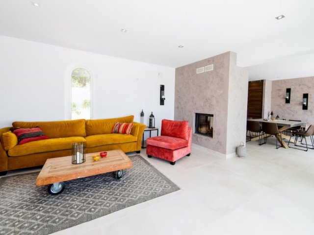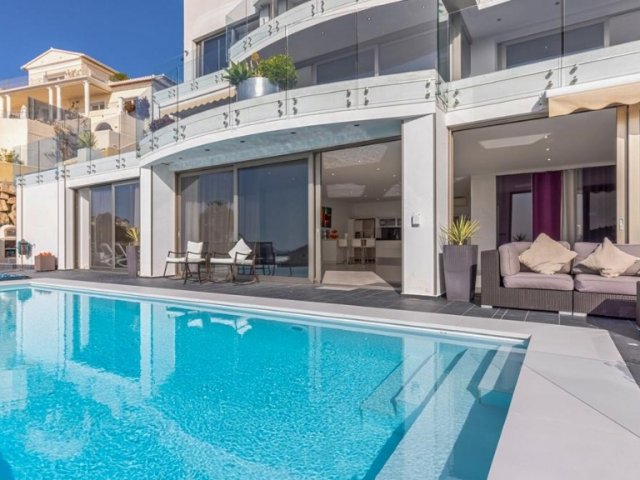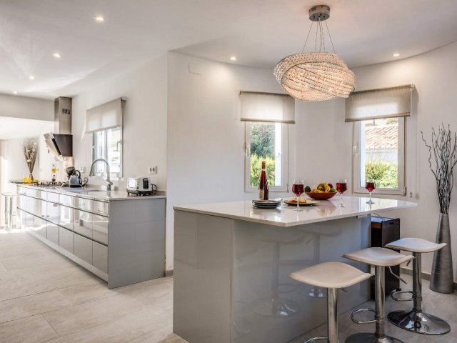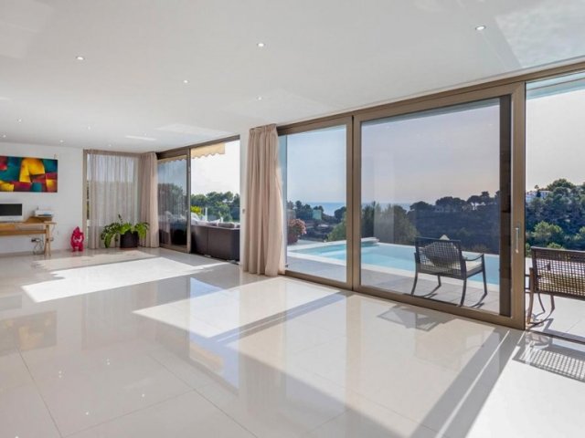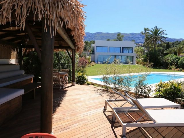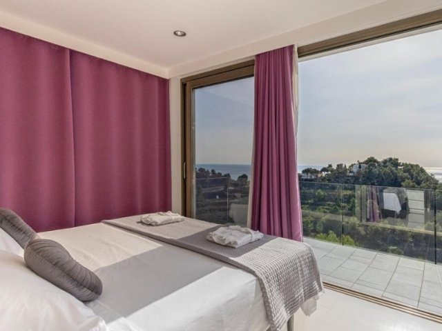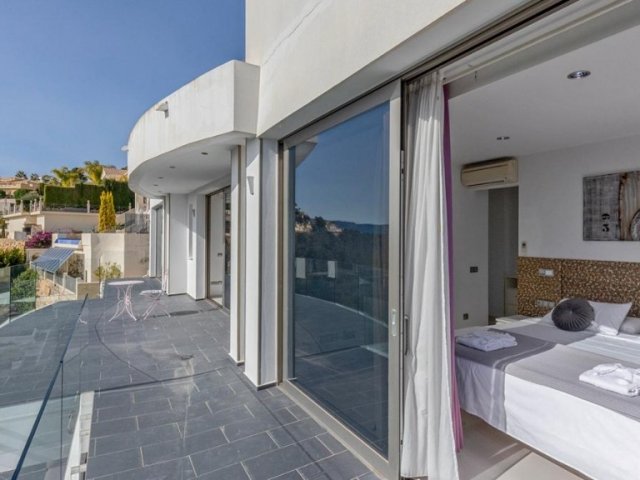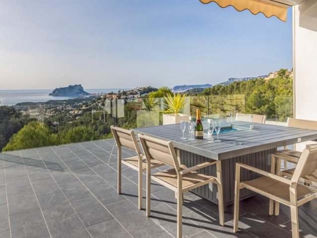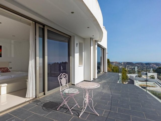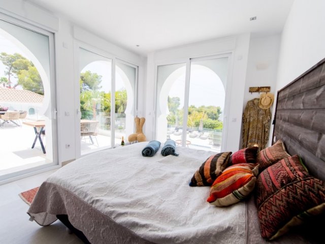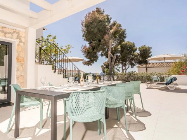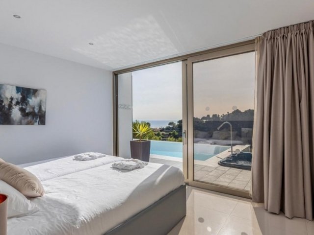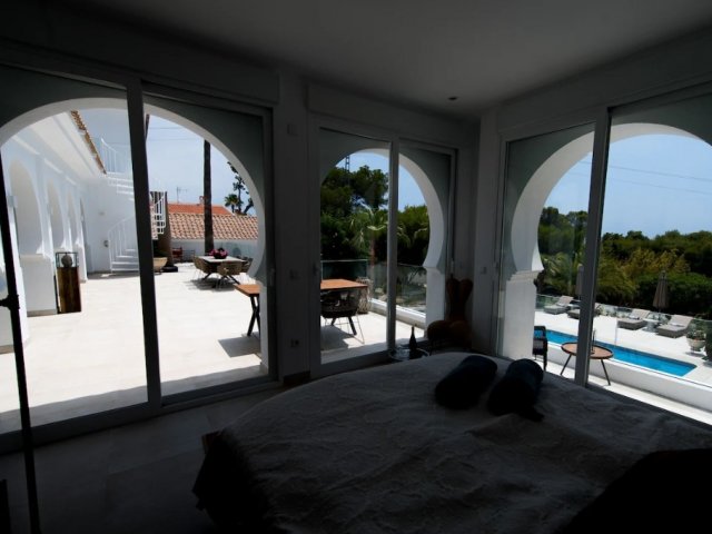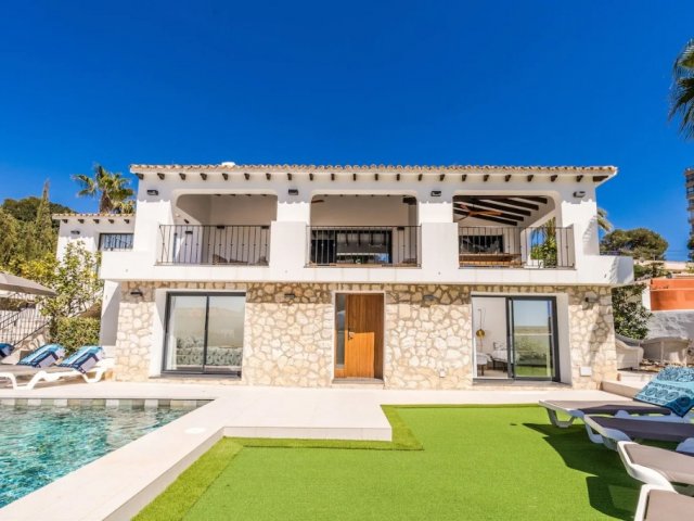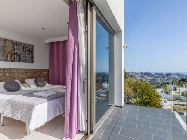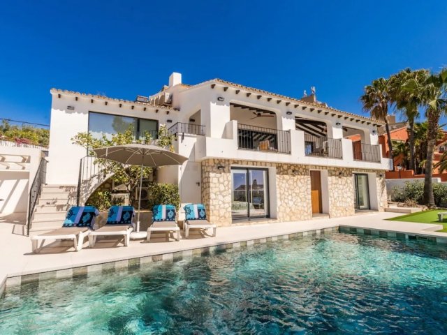 Modern 5-bedroom villa in Moraira for 10 guests with sea views, private pool, BBQ terrace, A/C and walking distance to beach, marina and restaurants.