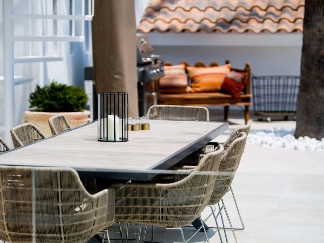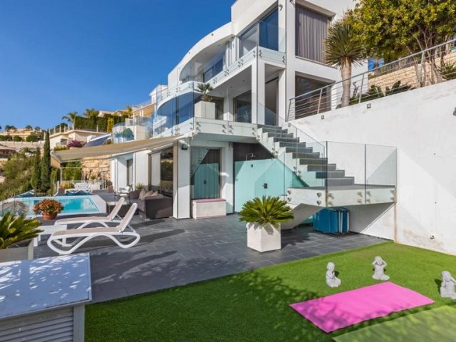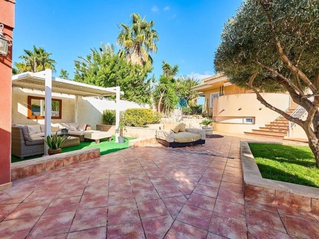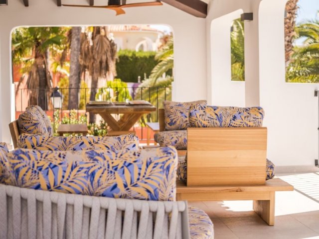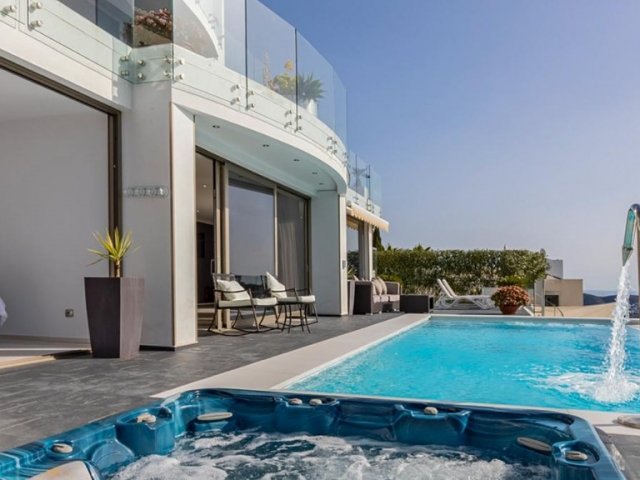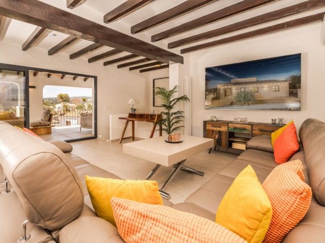 Luxury 4-bedroom villa for 8 guests with private pool, hot tub, landscaped garden, terraces, BBQ, A/C, WiFi and beautiful views near Arenal Beach and Moraira.