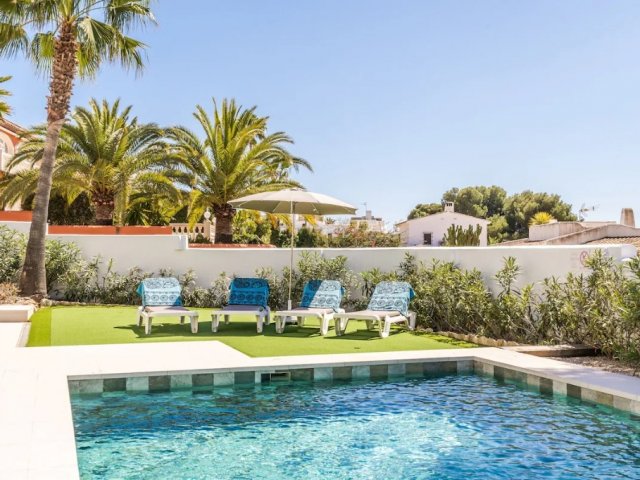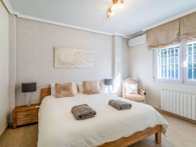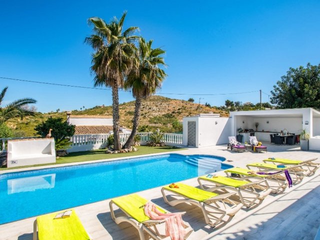 This spacious holiday villa for rent in Javea, Costa Blanca offers 5 bedrooms, a heated pool, BBQ and large terrace, just 10 minutes from Arenal Beach.
