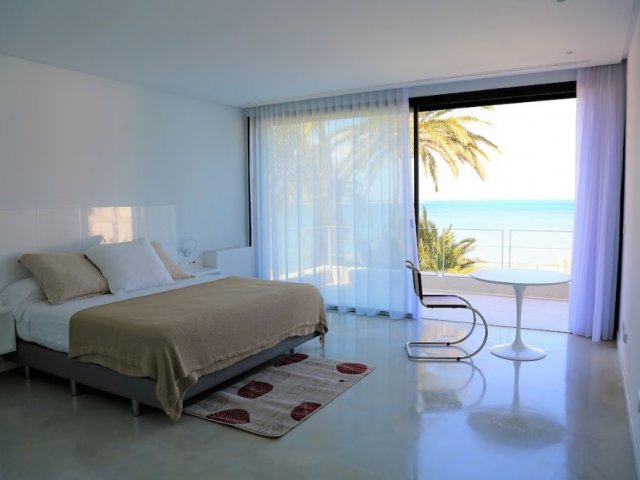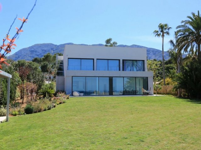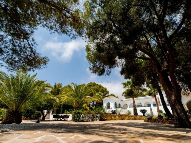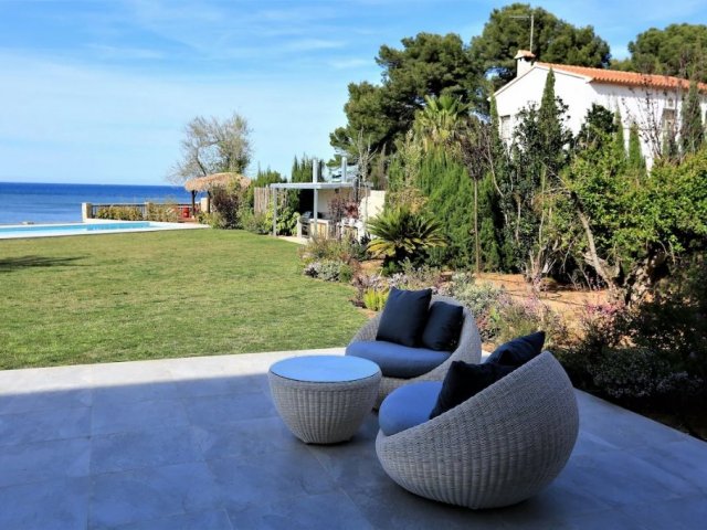 Waterfront villa in Denia for 12 guests, 6 suites, private pool, sea access, BBQ areas, kayaks, bikes, Wi-Fi, housekeeping and an exceptional garden.