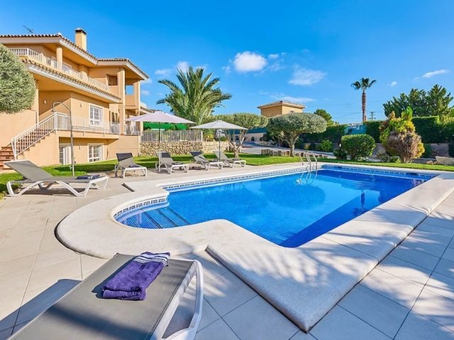 Modern 5-bedroom villa near Alicante for 11 guests with private pool, cinema room, garden, BBQ terrace and easy access to beaches and golf.