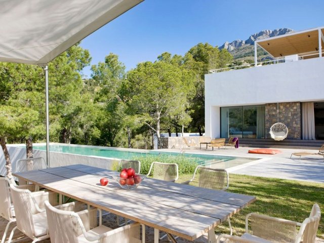 This modern luxury retreat in Altea offers 5 bedrooms, a private pool and easy access to beaches, comfortably hosting up to 10 guests for premium rentals.