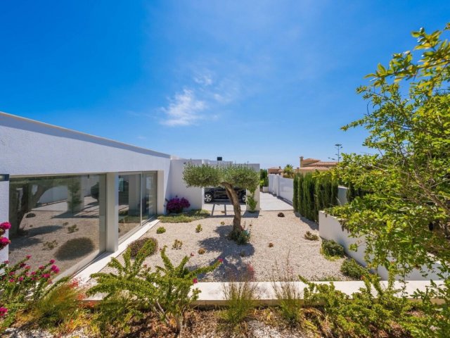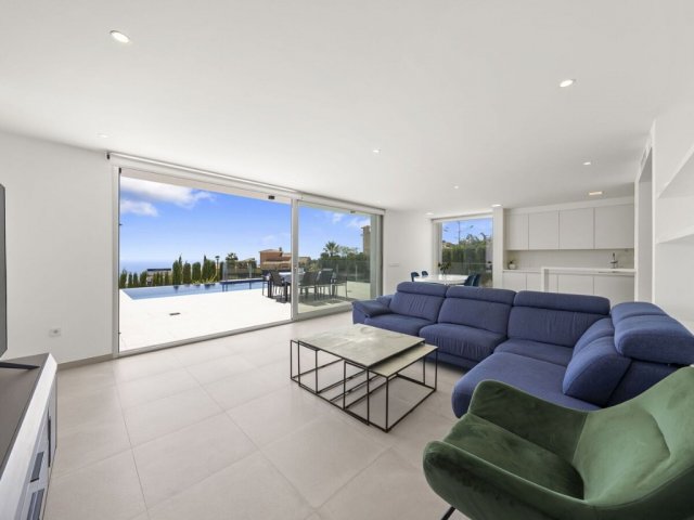 Modern 4-bedroom villa for 8 guests with private pool, sea-view terrace, air-conditioning, Wi-Fi and BBQ, close to Cala del Moraig and Moraira.