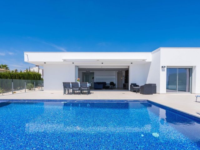 Modern 5-bedroom villa near Alicante for 11 guests with private pool, cinema room, garden, BBQ terrace and easy access to beaches and golf.