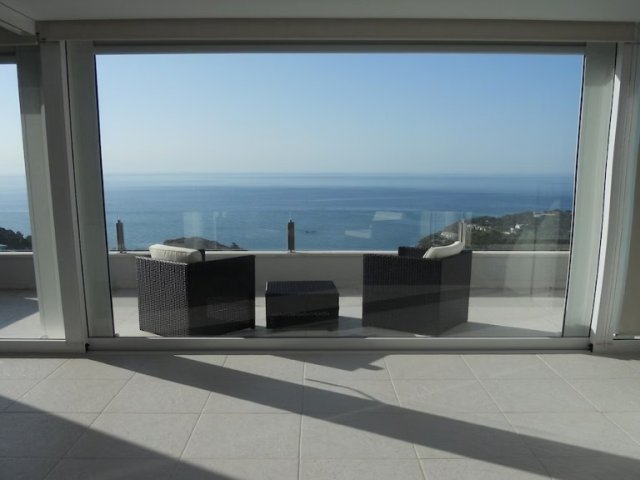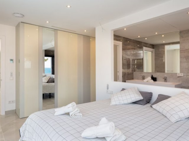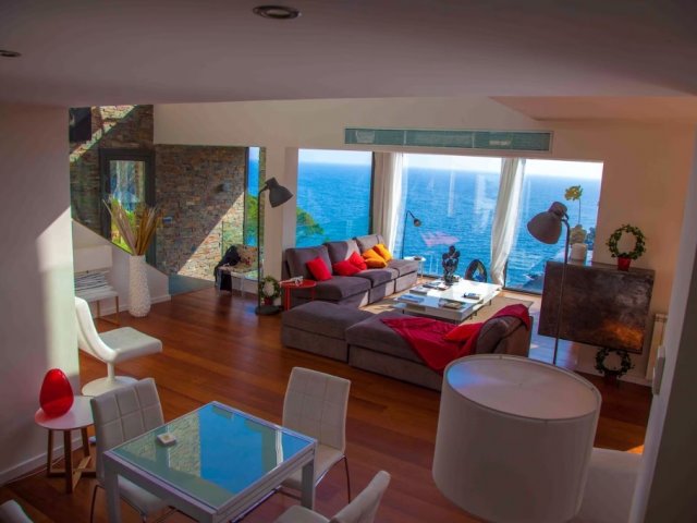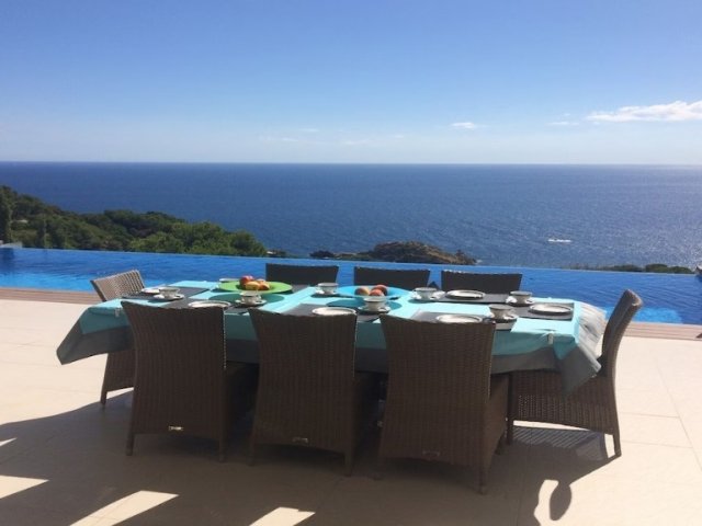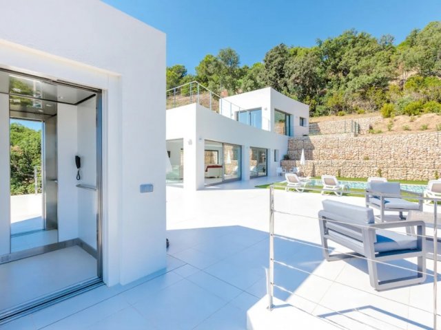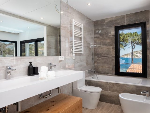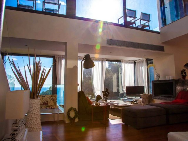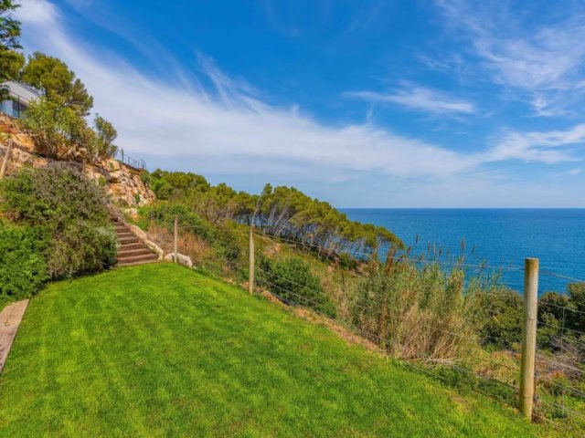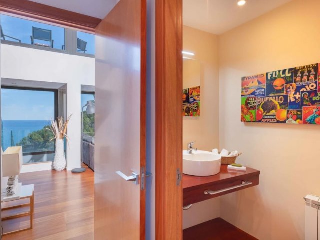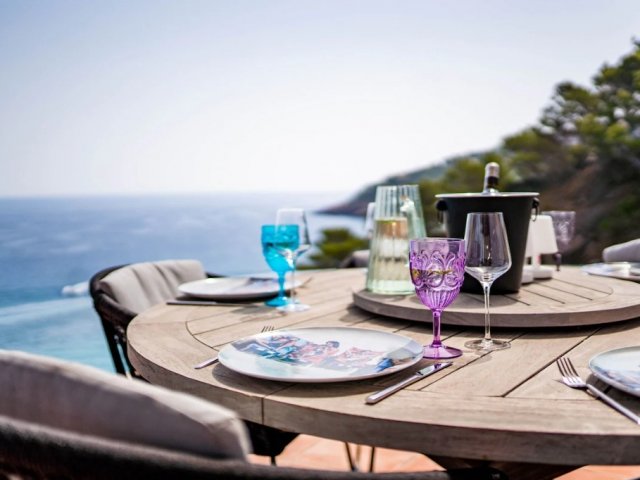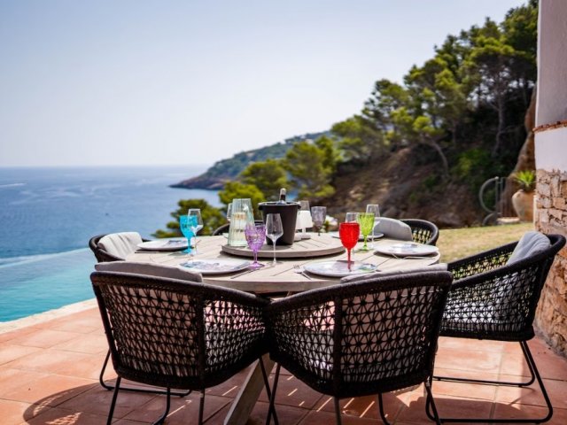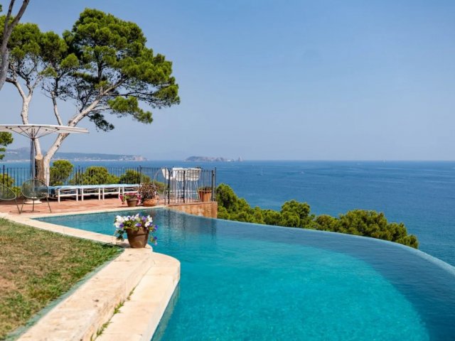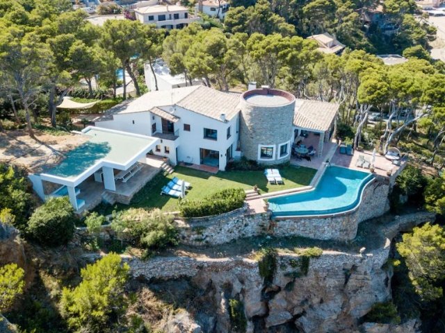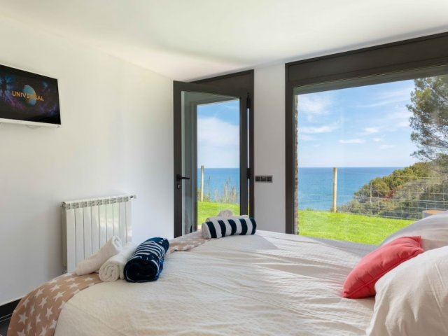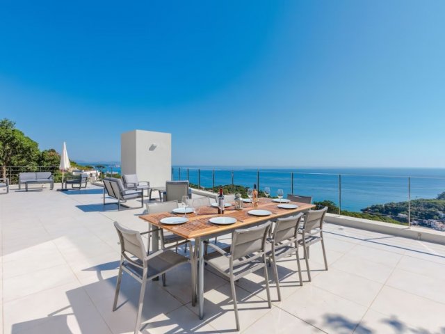 5-bed seafront villa for 10 guests with infinity pool, private elevator, terraces, panoramic sea views and designer interiors between Sa Riera and Aiguafreda.