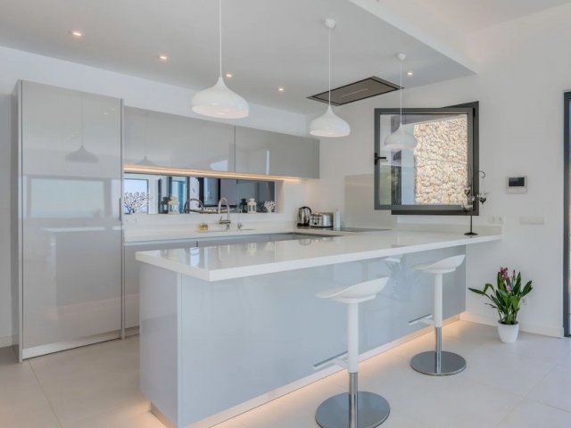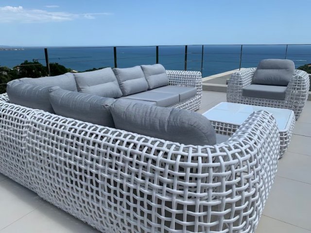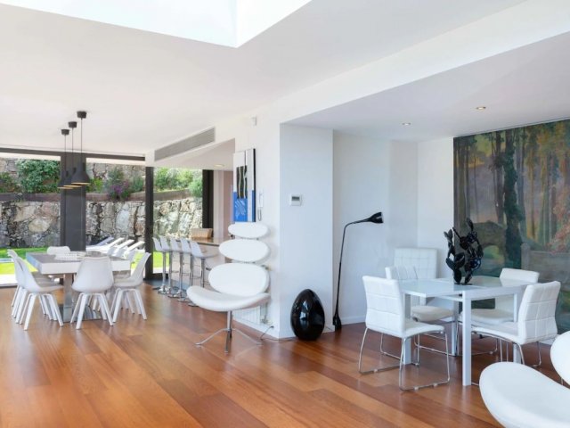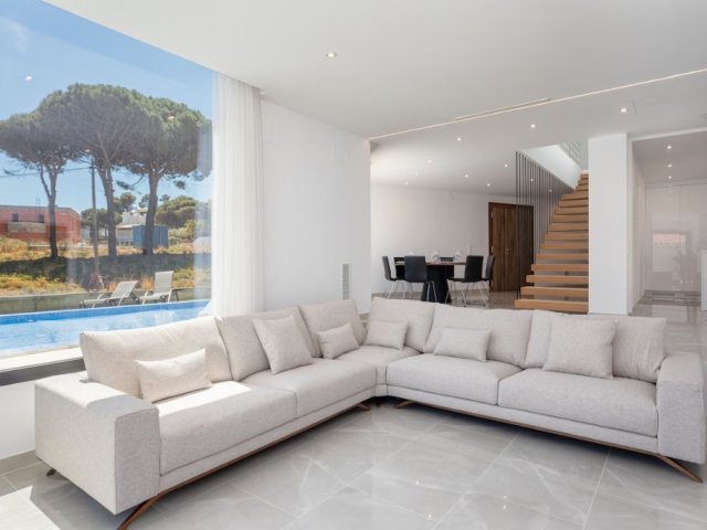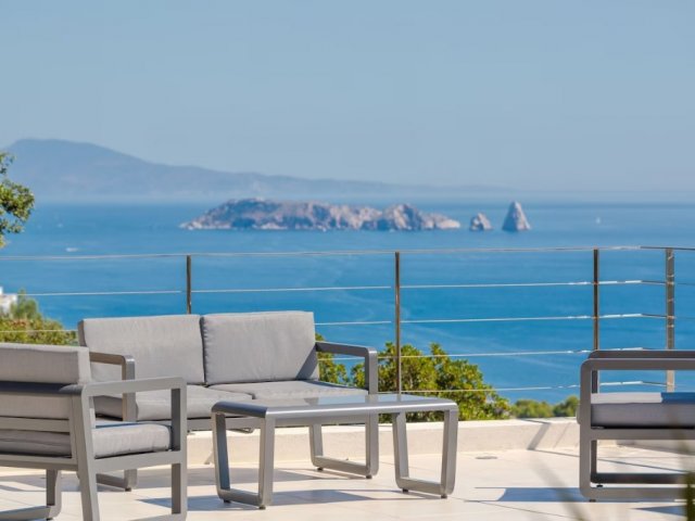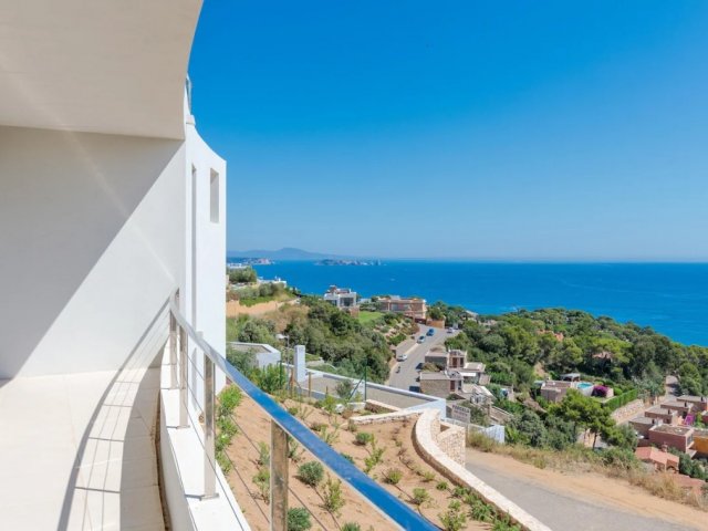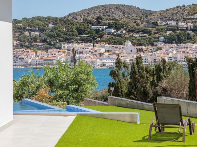 Modern 4-bedroom villa in L'Escala, Cala Montgo, with panoramic sea views, infinity pool, garden, terraces and walking access to the beach and restaurants.