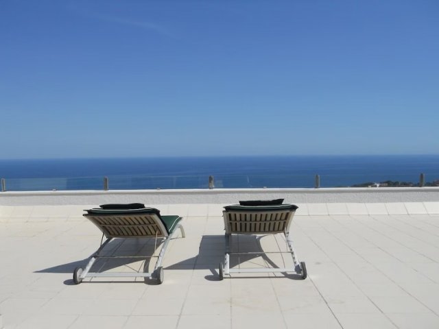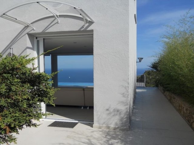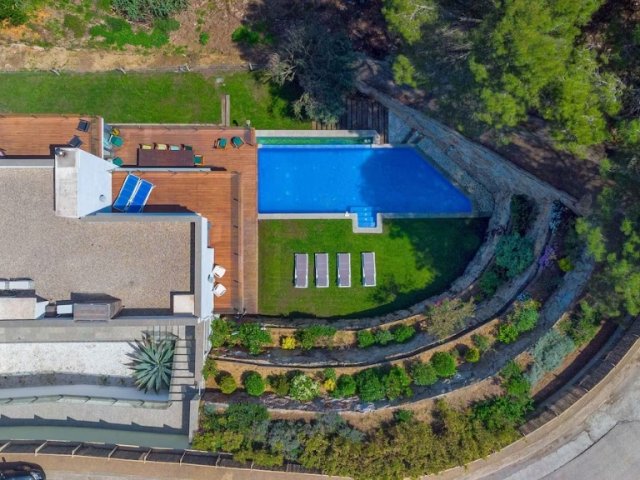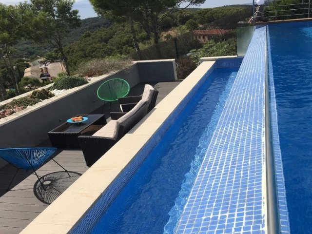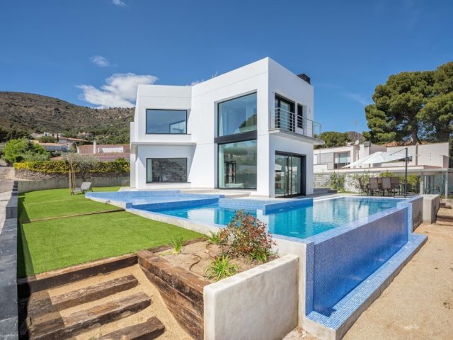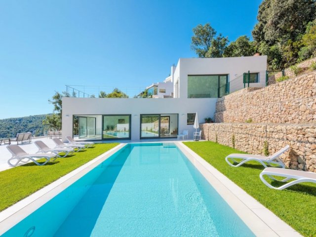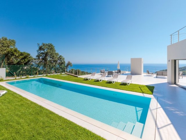 Modern 4-bedroom holiday villa with heated infinity pool, huge terraces and breathtaking 360° views over sea and mountains, just minutes from Tamariu Beach.