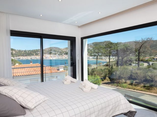 Elegant 4-bedroom villa in Roses with breathtaking sea views, infinity pool, modern interiors, and walking distance to Canyelles Petites Beach.