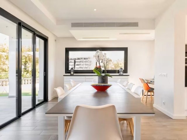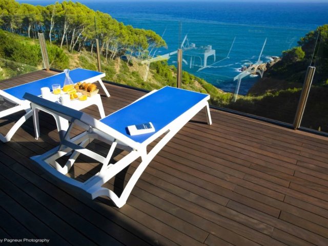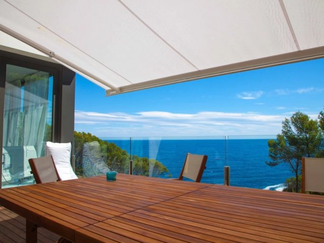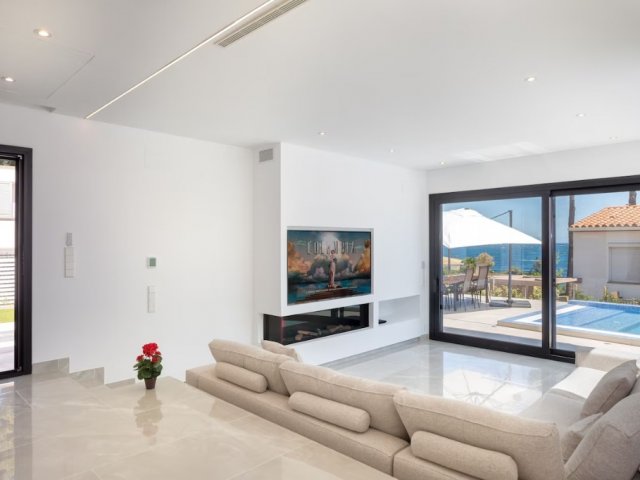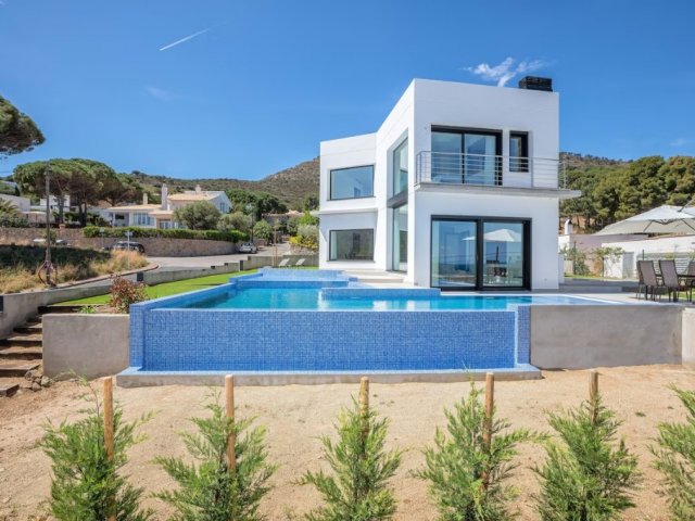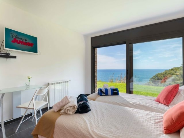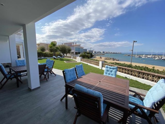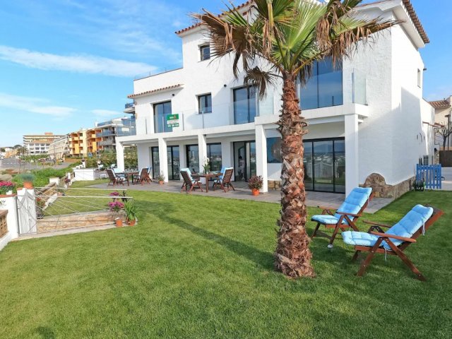 Modern 6-bedroom villa for 14 guests, frontline sea views, large terraces, private pool, air-conditioning, WiFi and direct access to the beach in L'Escala.