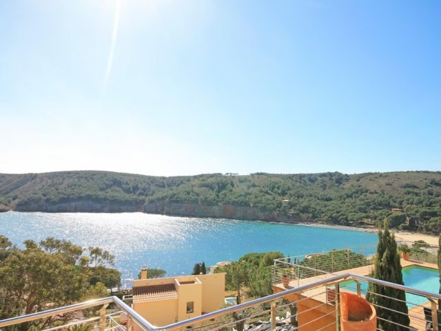 Elegant 4-bedroom beachfront villa in Port de la Selva with private pool, hot tub, panoramic sea views, and family-friendly spaces near Cap de Creus Park.