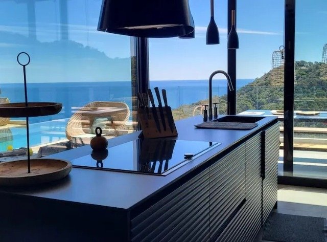 Modern 4-bed villa in l'Estartit with private pool, panoramic sea views, summer kitchen, terraces and easy beach access. Sleeps 8.