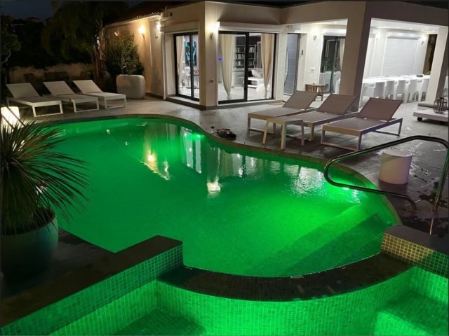 Large holiday home for up to 16 guests with swimming pool, indoor Jacuzzi, Hamam, terraces, mooring access and air-conditioning, just 800 m from the beach.