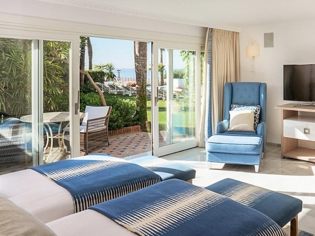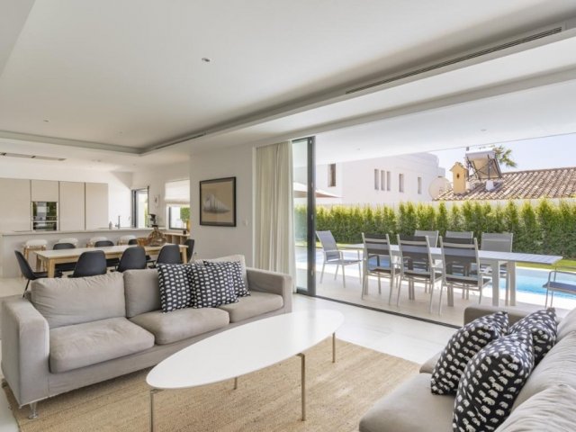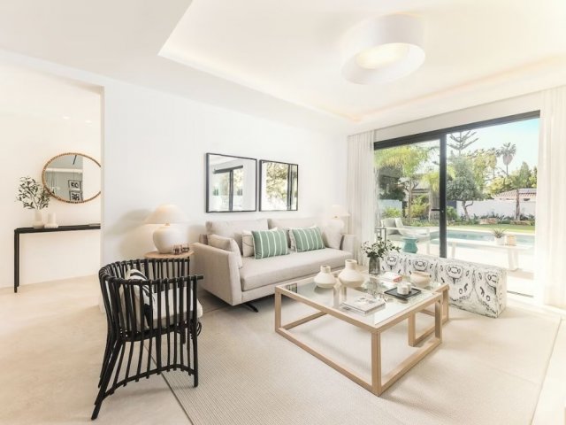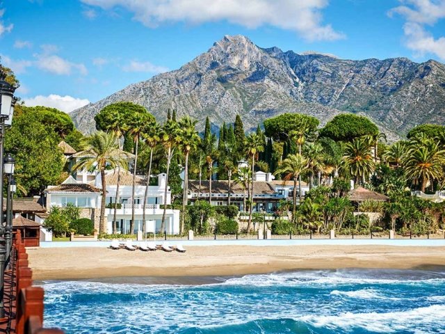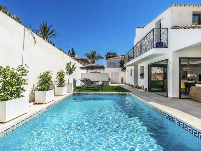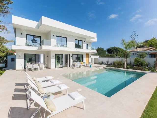 This elegant 4-bedroom holiday villa on Marbella’s Golden Mile offers a private pool and is just steps from the beach, sleeps 8.