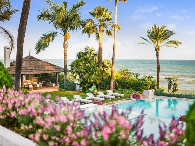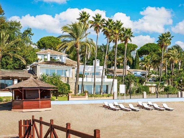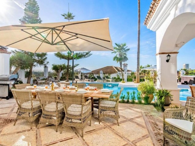 This luxury holiday villa on the Costa del Sol offers 6 bedrooms, a private pool and an exceptional location just steps from the beach.
