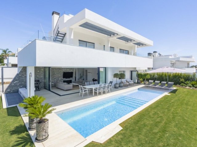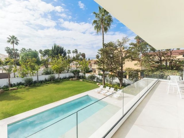 This luxury 5-bedroom villa offers a private pool and is just 5 minutes from the beach, ideal for families and golf enthusiasts near Marbella’s attractions.