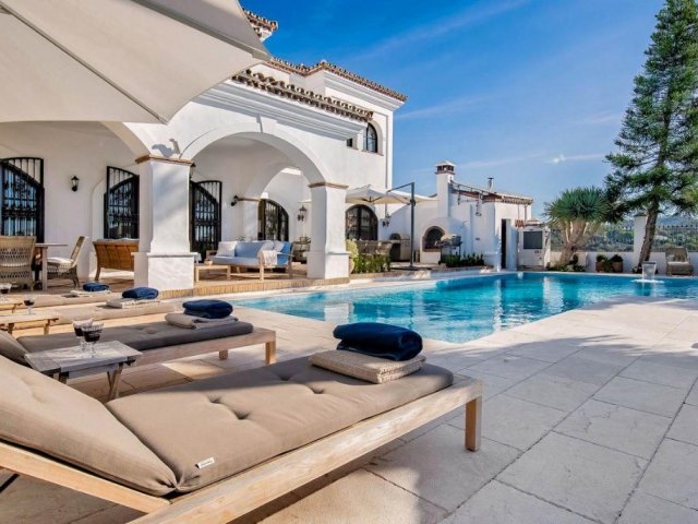 This luxury holiday villa in Marbella offers 6 bedrooms, a private pool, hammam and stunning views, ideal for an exclusive and relaxing stay